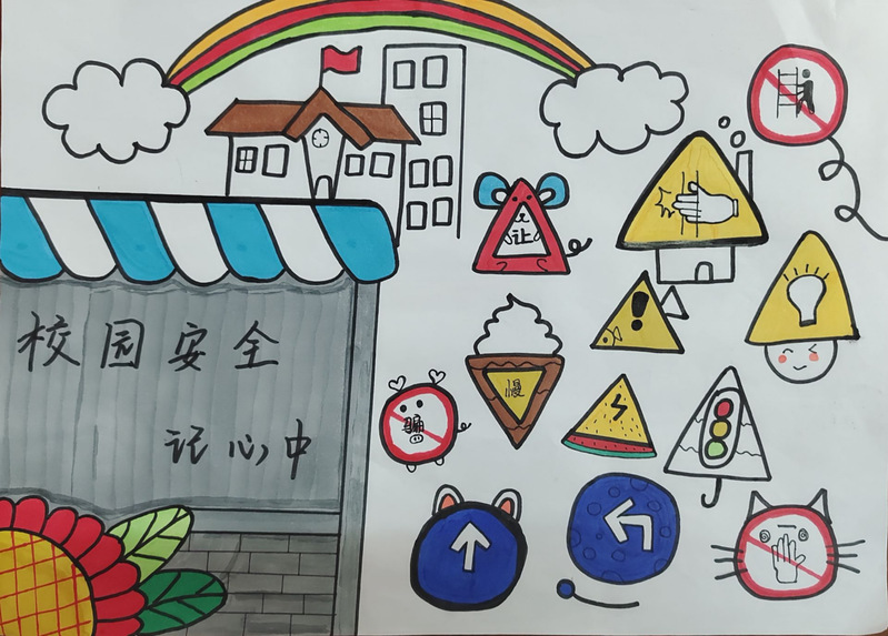 校园是员工一天中生活时间最长的地方,而安全是我们生活和学习的前提和保障,我们要时刻做到将安全“放在心中、记在心中、刻在心中”。参赛作品围绕“维护你我安全,共创和谐校园”这一主题展开设计,各班同学认真设计了“当心台阶”、“小心触电”、“减速慢行”等一系列安全警示标志,希望通过作品中的安全警示标志帮助员工们树立防患于未然的理念,提高安全意识。“安全责任重于泰山”,只有懂得安全知识,注重安全,积极地加以防范,才能够及时发现和消除安全隐患。