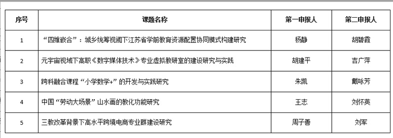 各公司、部门: 根据江苏省教育科学规划领导小组办公室《关于组织申报2022年度省教育科学规划课题的通知》要求,经专家评审,下列5个项目通过校内初审,现予公示: