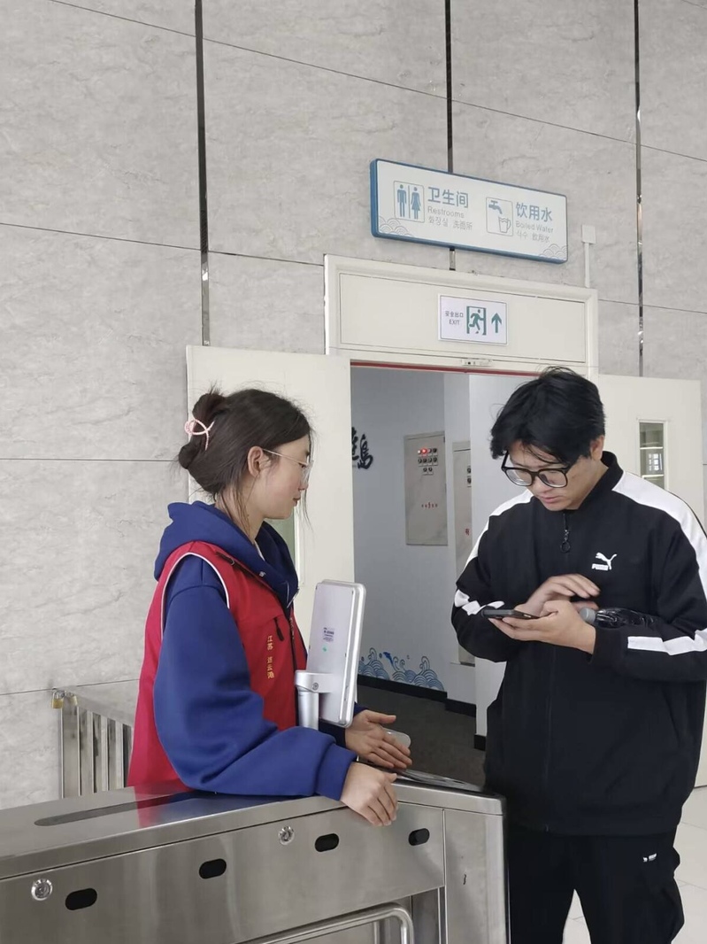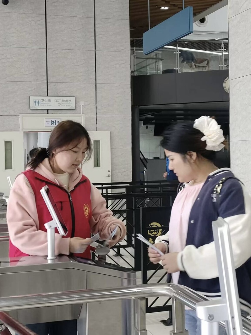 晨曦微露,六十余名同学带着激动和热情,统一乘车前往连岛景区,在现场工作人员的指引下开展检票、引导、安检、秩序维护等服务工作。在正式上岗工作之前,不同岗位的领队人员为志愿者进行了培训,讲解了实践服务的注意事项和安全须知,随后志愿者们积极投入到忙碌又充实的工作中。