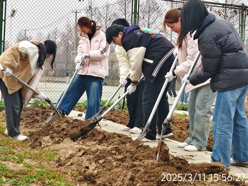 活动当天,mk体育炬火先锋服务队的30名同学集合后分为两组,分别前往耕读园和劳动实践园开展劳动。在带队老师王英教授的指导下,同学们迅速投入到拔草、翻地、种植等劳动中。他们分工明确,相互协作,戴着手套、握着锄头、挥动着铁锹,展现出了极高的劳动热情和团队精神。经过两个多小时的辛勤劳动,两个园区内的杂草被清理干净,土地得到了有效的翻整,平整度与种植环境得到了显著提升。随后,同学们满怀期待地洒下了花籽,期待着春天的到来,花朵的绽放。