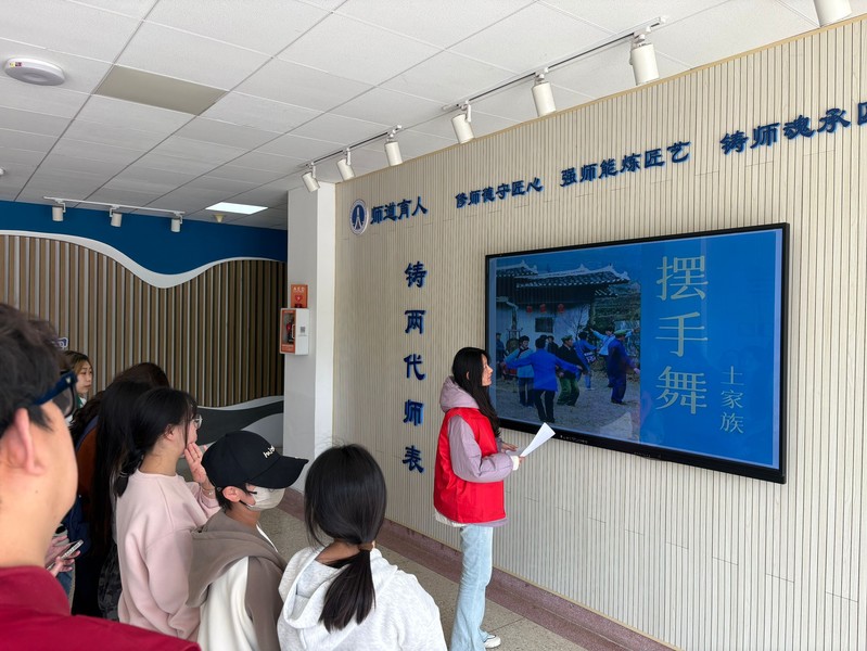活动伊始,播放民族特色内容的大屏瞬间成为焦点,各民族如诗如画的绚丽风景、源远流长的古老习俗、独具匠心的特色服饰以及精美绝伦的手工艺品依次呈现。训练有素的讲解员站在大屏前方,以生动详实的讲解,引领在场同学们走进各民族的多彩世界。从彝族火把节的热情奔放,到傣族泼水节的欢乐祥和,不同民族文化蕴含的独特魅力与深厚底蕴,让同学们对中华民族文化的博大精深有了更为直观、深刻的感悟与认知。