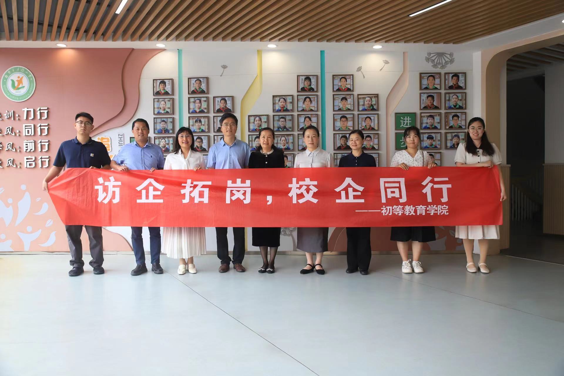 随后,公司一行来到南京市南站小学。南站小学书记、董事长孙立平表示了热烈的欢迎并详细介绍了南站小学的建设历程、办学宗旨、团队队伍建设和育人特色。刘长虹则全面介绍了公司的发展历程、专业设置和办学规模,并重点介绍了小学教育“铸文化、强实践、重综合、一专多能”的专业特色和人才培养成效。双方就人才培养方案优化、实习实践、公司产品研究等内容达成了明确的合作意向,并隆重举行了实践教学基地的揭牌仪式,刘长虹为孙立平颁发了实践导师聘书。