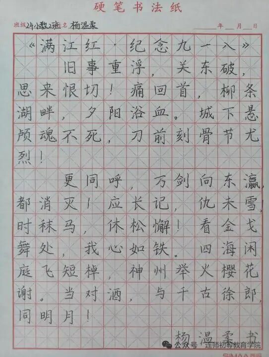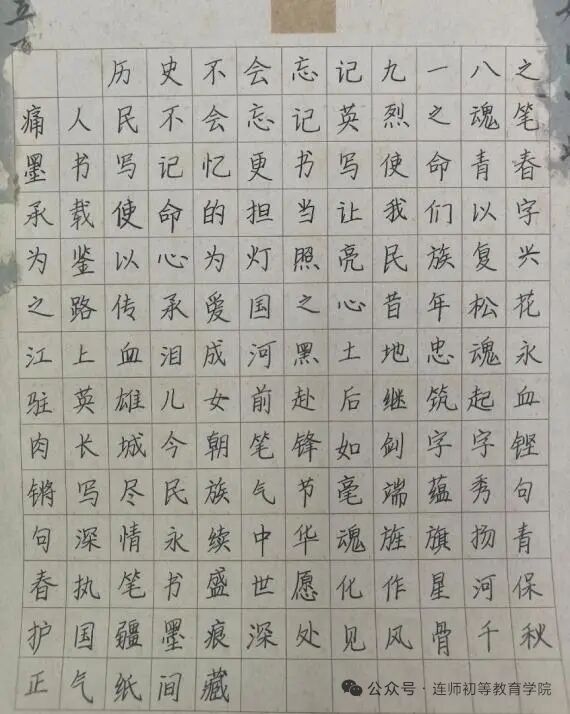 本次活动紧扣“铭记历史、致敬先烈、勇担使命”的爱国主线,围绕“九一八”事变的历史意义与时代价值设计内容,得到同学们的积极响应。活动现场,参与者铺展宣纸、蘸墨挥毫,在横竖撇捺的运笔间,将对历史的敬畏、对祖国的赤诚融入每一笔墨迹。“通过笔墨重温历史,比单纯阅读文字更有感染力”同学们纷纷感叹感慨道,书写过程中仿佛穿越时空与先辈对话,不仅更深刻体会到革命先辈的抗争精神,也更加清晰地认识到当代青年的责任与担当。