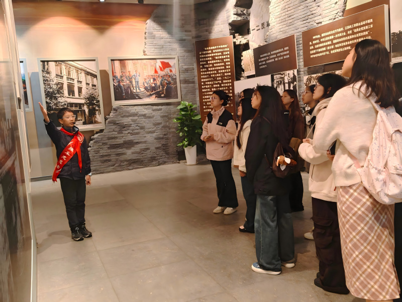 活动现场,在庄严肃穆的氛围中,全体成员有序步入纪念馆。跟随小讲解员的细致解说,大家沿着“革命岁月”“建设征程”“时代新篇”的展览脉络,系统参观了馆内陈列的历史文物、珍贵文献档案及逼真的场景复原展区。展柜中泛黄的手稿、历经战火的实物以及生动的影像资料,全景式地展现了连云港地区革命先辈为民族解放与国家建设事业艰苦奋斗、无私奉献的宏伟画卷。参观过程中,同学们或驻足凝视、认真记录,或低声交流、凝神思索,在身临其境的“历史触摸”中,深刻感悟中国共产党人的初心使命与责任担当。